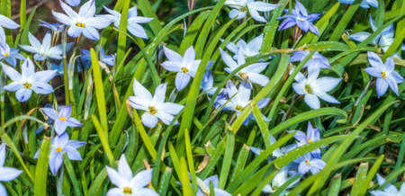 Common star hyacinths are early bloomers that herald spring. They bloom at Easter time. The flower is found in the park, forest, and garden. beautiful blue, white flowers.