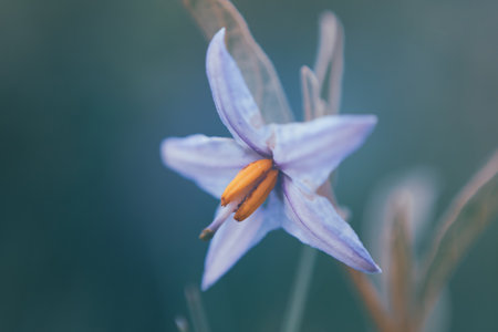 close-up of blue flower plant outdoor in sunny backyard shot at shallow depth of field