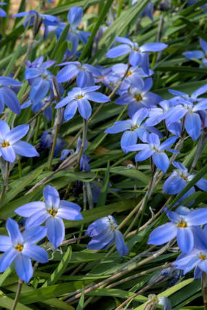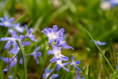 Glory-of-the-snow blue Squill flowers on spring meadow