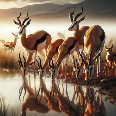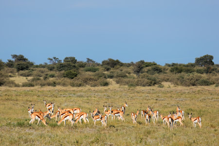 Wild springbok antelopes in the African savanna