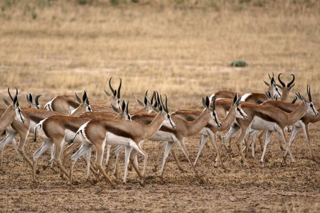A herd of springbok walking in the arid Kgalagadi
