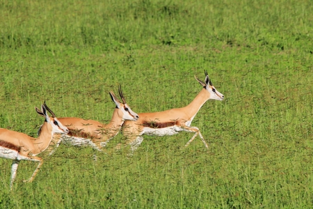 Springbok running in the savannah of Amboseli National Park, Kenya