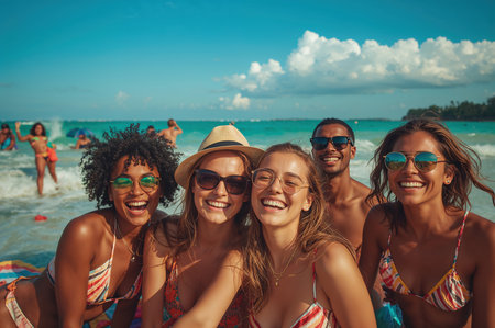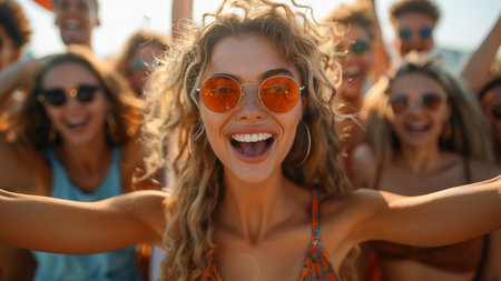 fun happy lifestyle joy friends young beauty summer friendship sunglasses. Generative AI.