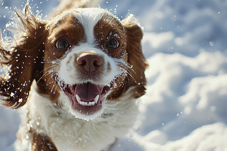 Joyful English Springer Spaniel Revealing in Winter's Splendor by Generative AI
