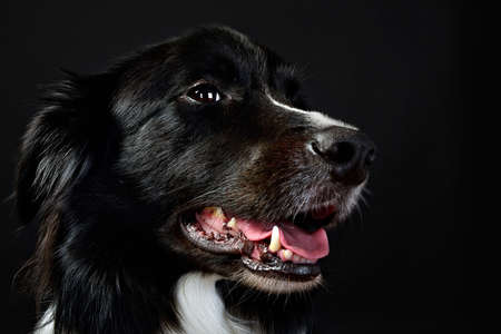 Spotted curly black black dog. Black white photo is taken in the studio. Dog's portrait