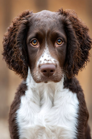 Portrait of a brown working type English springer spaniel. Wachtelhund