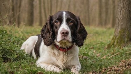AI Generated. Adorable Liver and White Cocker Spaniel Sitting