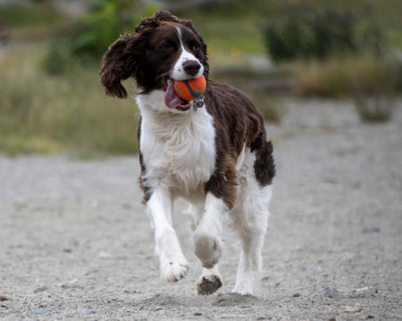 Springer Spaniel Dog holding a ball