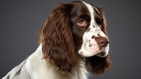 Portrait of a beautiful English Springer Spaniel dog. Studio shot.