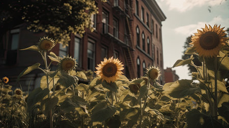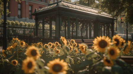 Illustration of sunflower plants in gardens and parks, 3d realistic
