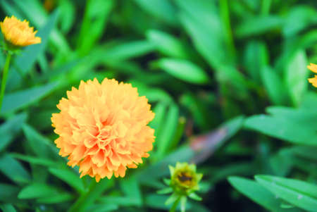 Beautiful yellow flowers blooms in the garden. Close up. Soft focus.
