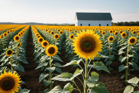 Sunflower field under bright sunlight. Agriculture backrounds.