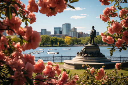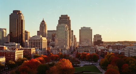 Boston skyline in Autumn, Massachusetts, USA. Image contain certain grain or noise and soft focus.