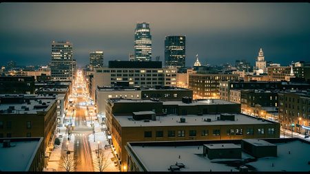 Captivating aerial view of an urban landscape showcasing modern buildings and busy streets, highlighting the dynamic life of city development and architecture.