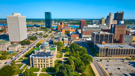 Aerial View Toledo Skyline with Historic Courthouse and River