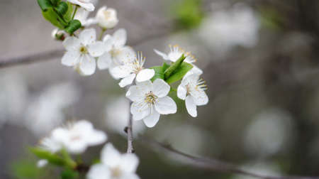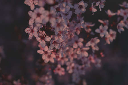 Cherry tree blossoming flowers with soft petals on natural floral background
