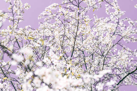 White blossoming cherry flowers closeup. Spring background