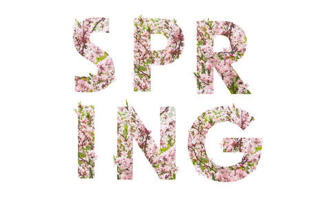 Word Spring made from colorful wooden letters on tender floral background