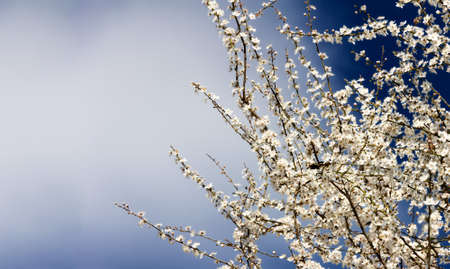 Slecetive focus of white blossom over the blue sky