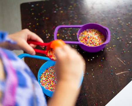 Playing with the colourful sugar sprinkles. Fun activites for children. Fine motor skills.