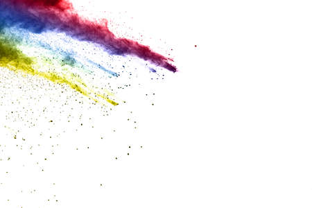 Abstract powder splatted background. Colorful powder explosion on white background. Colored cloud. Colorful dust explode. Paint Holi.
