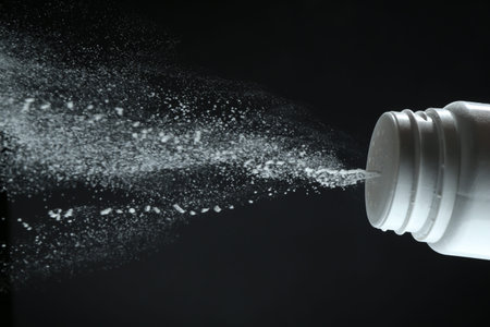 Baby powder product with talcum mineral spilling over air