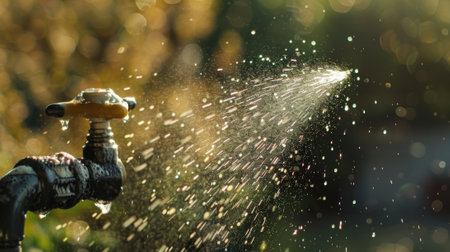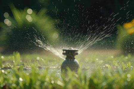 close-up of sprinkler head, with water droplets spraying into the air, created with generative ai