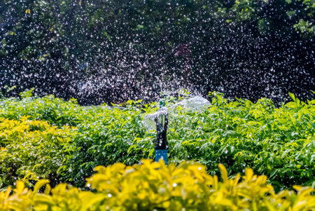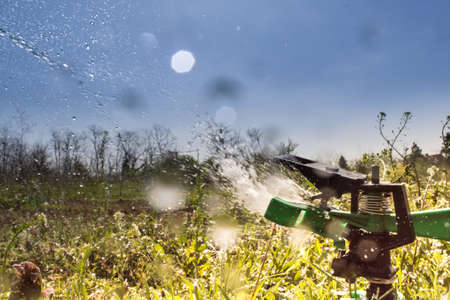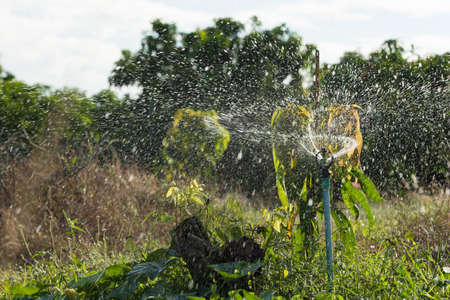 Water springer plants Working in the Agricultural farm, Closeup texture background of water.
