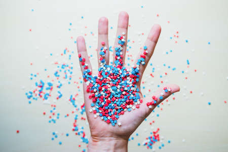 Colored sugar sprinkles in the palm of the hand