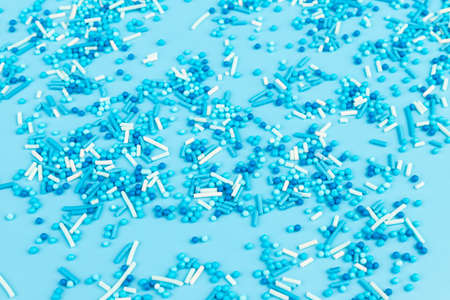 colorful sprinkles over blue background, decoration for cake and bakery