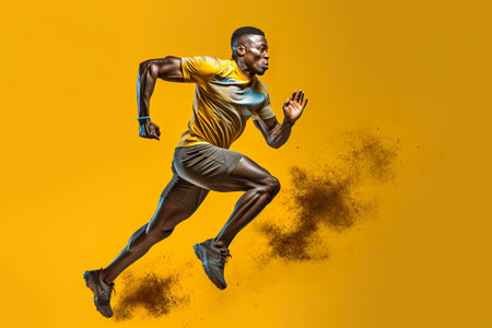 A man in a yellow shirt is running. Generative AI.
