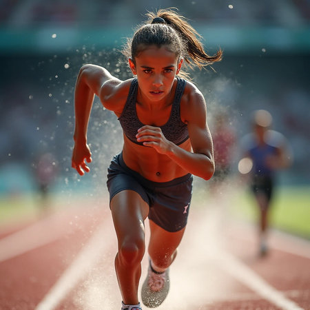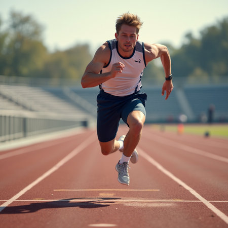 Athlete sprinting with intense focus