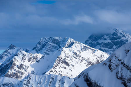 Epic snowy mountain peak with clouds in winter, landscape, alps, austria