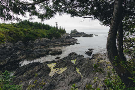 Wild Pacifc Trail, Ucluelet, Vancouver Island, BC, Canada. Beautiful View of the Rocky Ocean Coast during a colorful and vibrant morning sunrise.