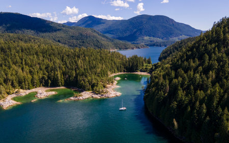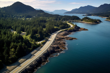 Mesmerizing Aerial Panorama: Exploring the Breathtaking Sea to Sky Highway along the Pacific Ocean West Coast