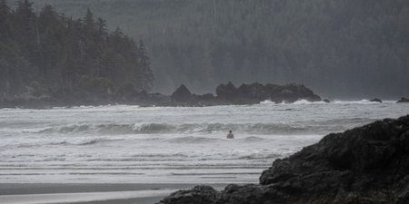 Tourist in the ocean along Shoreline in Cape Scott Provincial Park, San Josef Bay, Vancouver Island, British Columbia, Canada