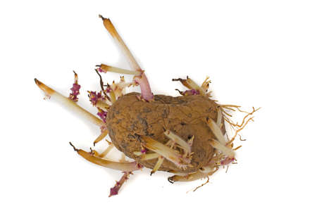 A germinating potato isolated on white background.