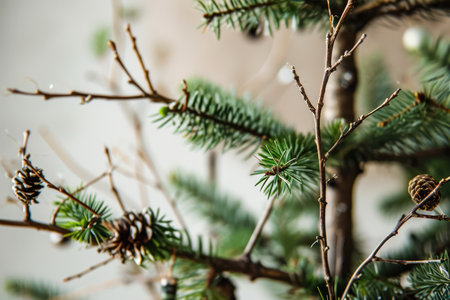 Selective Focus On Festive Branches As An Alternative Sustainable Christmas Tree.