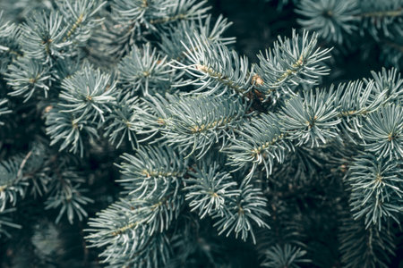 Needles on the branches close-up. natural background branch blue spruce