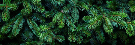 A dark green pine tree background with numerous branches and leaves. The branches of the evergreen trees form an intriguing pattern, while their delicate details enhance its beauty. This photograph was taken from above at eye level using a Canon EOS camera. It has a high resolution of 3056 x 2489 pixels and is presented in a panoramic format. --ar 11:5 --v 6.1 Job ID: 262fb884-ce7d-41de-976a-54eb2e71ae8e