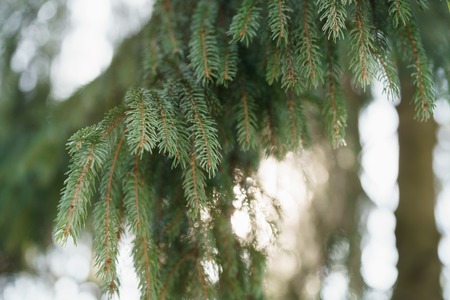 A toned photo with fir branches background, selective focus.