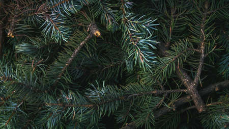 Branches of a Christmas tree in the forest. Christmas background.