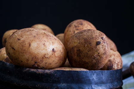 Fresh organic potatoes. Dug and unprocessed potatoes. Big potato close up
