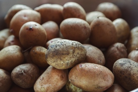 Potatoes background. Fresh organic potatoes close up. Potatoes background.