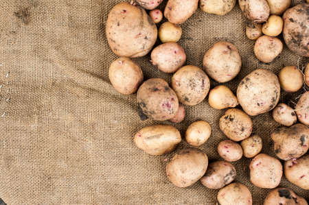 Fresh potatoes excavated from garden on ecological farm. Top view.