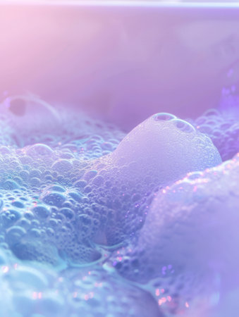 Bubbles accumulate in a soothing bath, creating a serene and vibrant atmosphere perfect for relaxation and self-care after a long day.