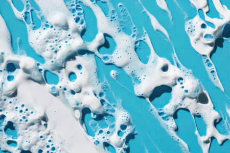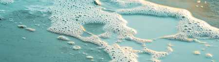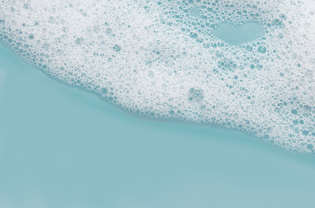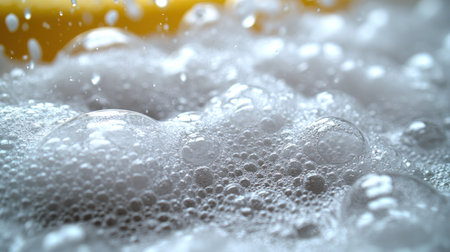 Layer of soapy foam bubbles on water, creating a clean and fresh feel with light emphasizing the soft texture