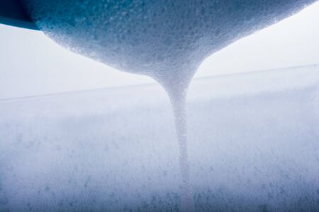 Texture of white foam. Cleansing mousse for the face or bath foam or washing powder. Copy space