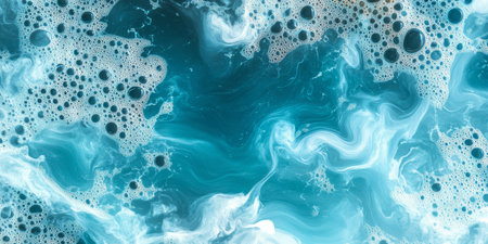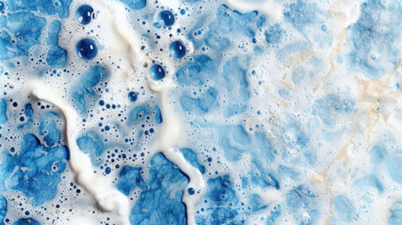Vibrant abstract pattern featuring shades of blue and white, resembling water with bubbles and foam. fluidity and texture create calming and refreshing visual experience