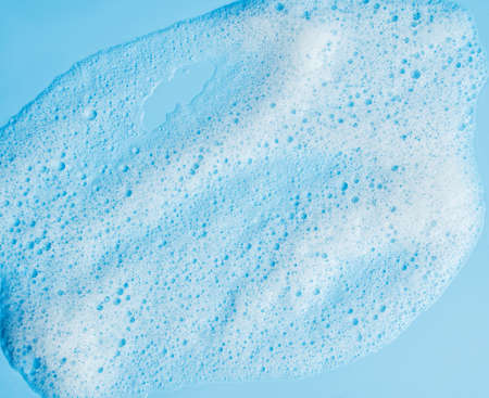 Soap foam close-up. Background from soapy bubbles of shampoo in blue color